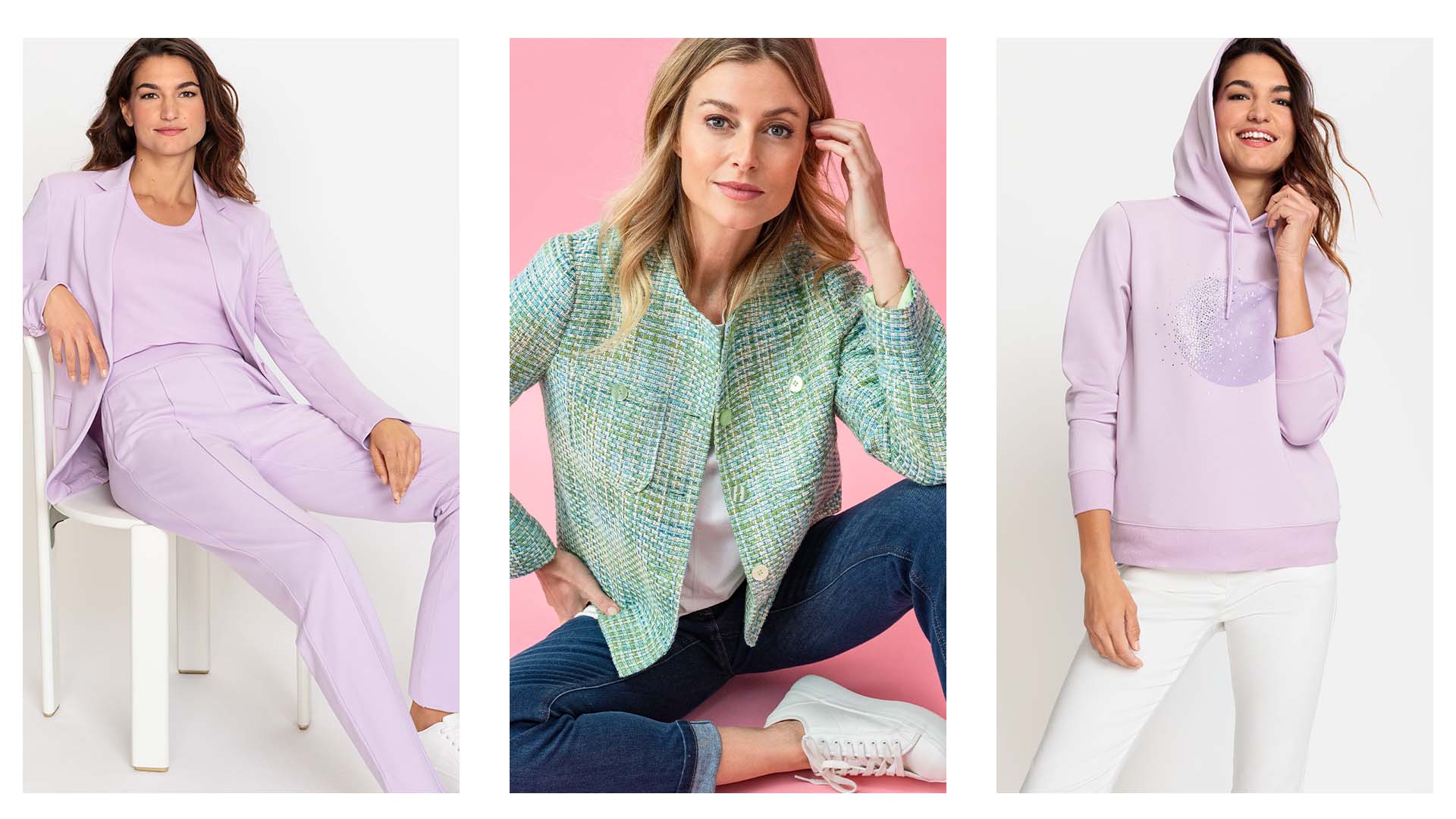 A soft lilac, a soft pistachio green or would you prefer a heavenly light blue? Delicate pastel colors are absolutely on trend in the spring/summer 2024 season and create enchanting outfits for the coming spring. Pastel color gradients and abstract floral prints give the collection a feminine touch.