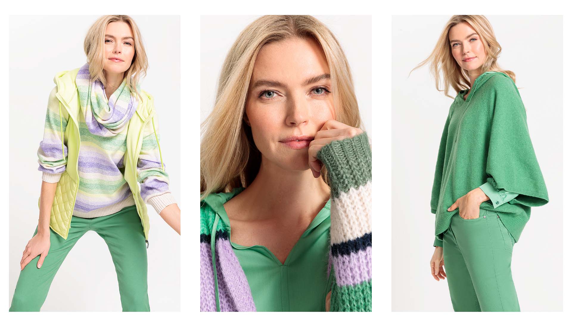 La collection colorée PURE SPIRIT ouvre la saison automne/hiver de cette année, exsudant de joyeuses vibrations de bien-être avec des jaunes ensoleillés et des verts naturels. Les fils tricotés duveteux et les nouveaux styles de jersey renforcent l’attente de l’automne. Les matériaux durables tels que REPREVE® constituent également un élément de mode respectueux de l’environnement.