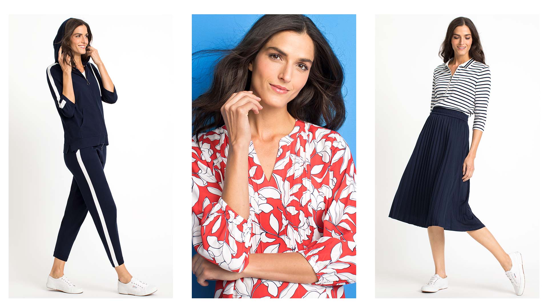 La nouvelle collection NEW HORIZON est d’inspiration maritime, avec une palette de couleurs harmonieuse composée de blanc, de rouge et de différentes nuances de bleu. Des rayures marinières élégantes et des looks monochromes illustrent le thème tendance de la saison. Les imprimés ornementaux modernes et les imprimés de feuilles à grande échelle annoncent l’arrivée de l’été.