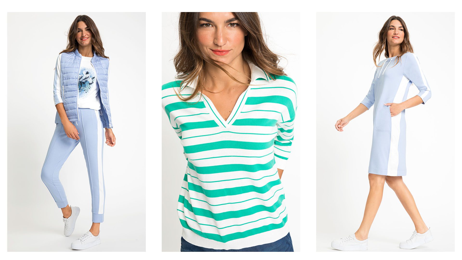 Les silhouettes décontractées et sportives rencontrent des couleurs rafraîchissantes! La nouvelle collection COOL SPORTS est tout à fait dans l’air du temps avec LA couleur qui fait fureur, le vert. Il s’agit d’une véritable déclaration de mode avec des rayures sportives, des rayures en bloc et des formes de polo élégantes. Que vous portiez ce look pour aller faire du yoga, vous promener ou vous détendre, un look cool est garanti!