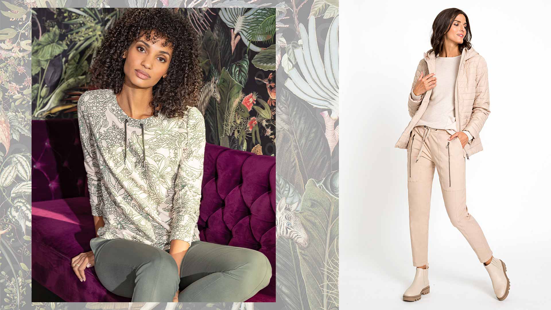 Notre dernière collection NATURE LOVE a été créée et inspirée par les nombreuses facettes de la nature. Créée avec de magnifiques imprimés de feuilles, des tissus durables, et des tons de vert et de beige. Vous porterez ces styles durant toute la saison!