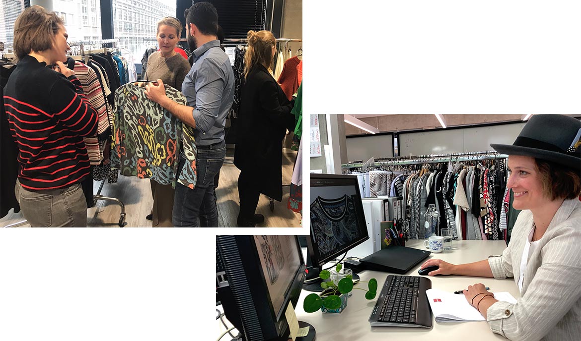 Un autre moment marquant de mon stage a été la visite des magasins qui font partie du marché. J’y ai accompagné Mona une fois. C’est un peu comme faire du magasinage, sauf que vous ne le faites pas pour vous, mais plutôt dans le cadre d’une mission professionnelle secrète. Vous visitez différents magasins pour vous inspirer et vous tenir au courant. Comme le toucher des tricots est très important, il est très important de pouvoir toucher les différents types de tricots en personne.