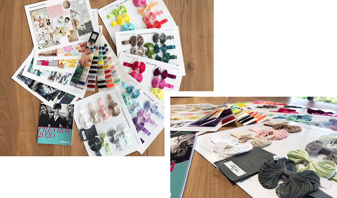 Oui, c’est bien cela! Un service des couleurs est une agence de tendances auprès de laquelle nous recueillons des informations sur les couleurs émergentes dans le monde de la mode. Nous collaborons avec plusieurs agences de tendances de différents pays. Puisque la tendance des couleurs varie d’un lieu à l’autre, nous souhaitons rassembler des informations internationales pour offrir le meilleur aux clientes d’Olsen. Nous croyons que nos styles doivent plaire aux femmes du monde entier. C’est pourquoi je recherche les couleurs qui seront à la mode sur tous les continents.