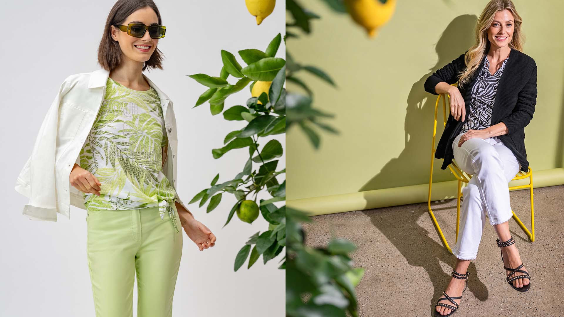 Welcome to the jungle! Modern looks in natural shades of green, trendy animal prints and exotic leaf prints will send you on a fashionable adventure. The ETHNO CHARM collection presents itself in a color scheme of black, white and khaki, with a vibrant lime green setting bright accents. Look forward to casual linen styles and new silhouettes.